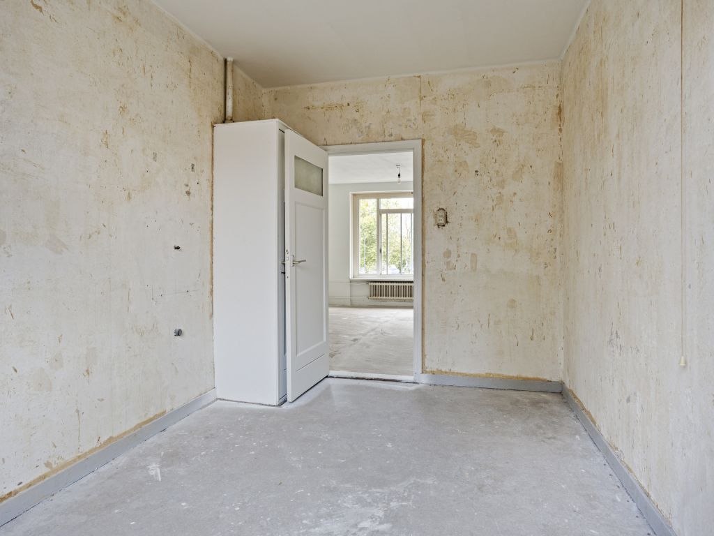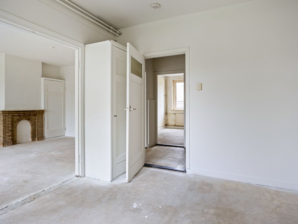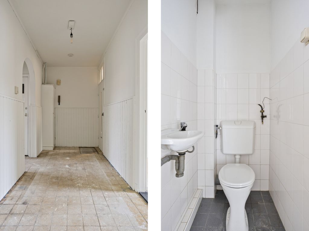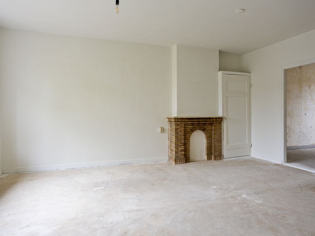 Ruime hal met meterkast, toiletruimte en toegang tot de keuken, slaapkamer en de lichte woonkamer met een sfeervolle schouw. De eetkamer sluit open aan op de woonkamer, waardoor een prettige leefruimte ontstaat. Vanuit de woonkamer is de tweede slaapkamer bereikbaar, voorzien van een inbouwkast. Beide slaapkamers liggen aan de achterzijde van het appartement.