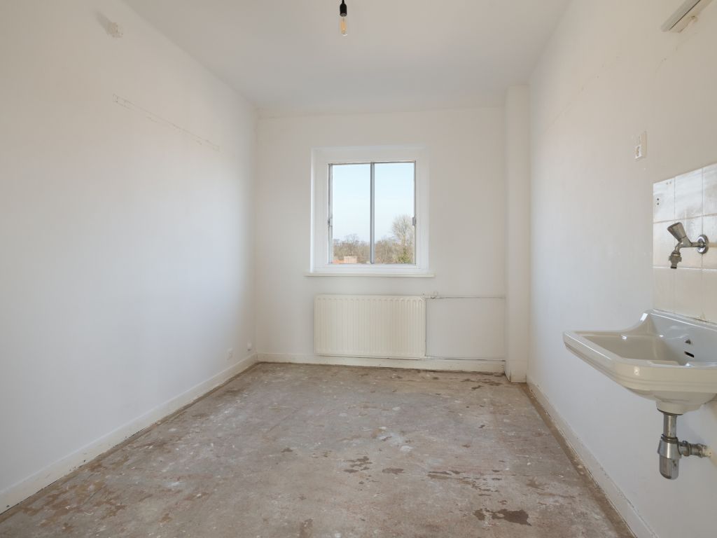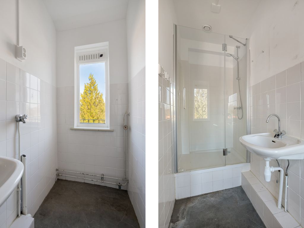 Vanuit de hal is middels een luik de grote bergzolder (ca. 32 m2) bereikbaar, waar zich de standplaats van de CV-ketel bevindt.