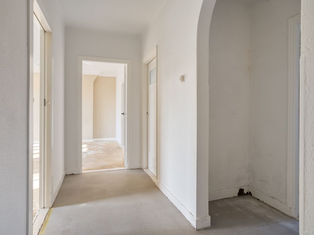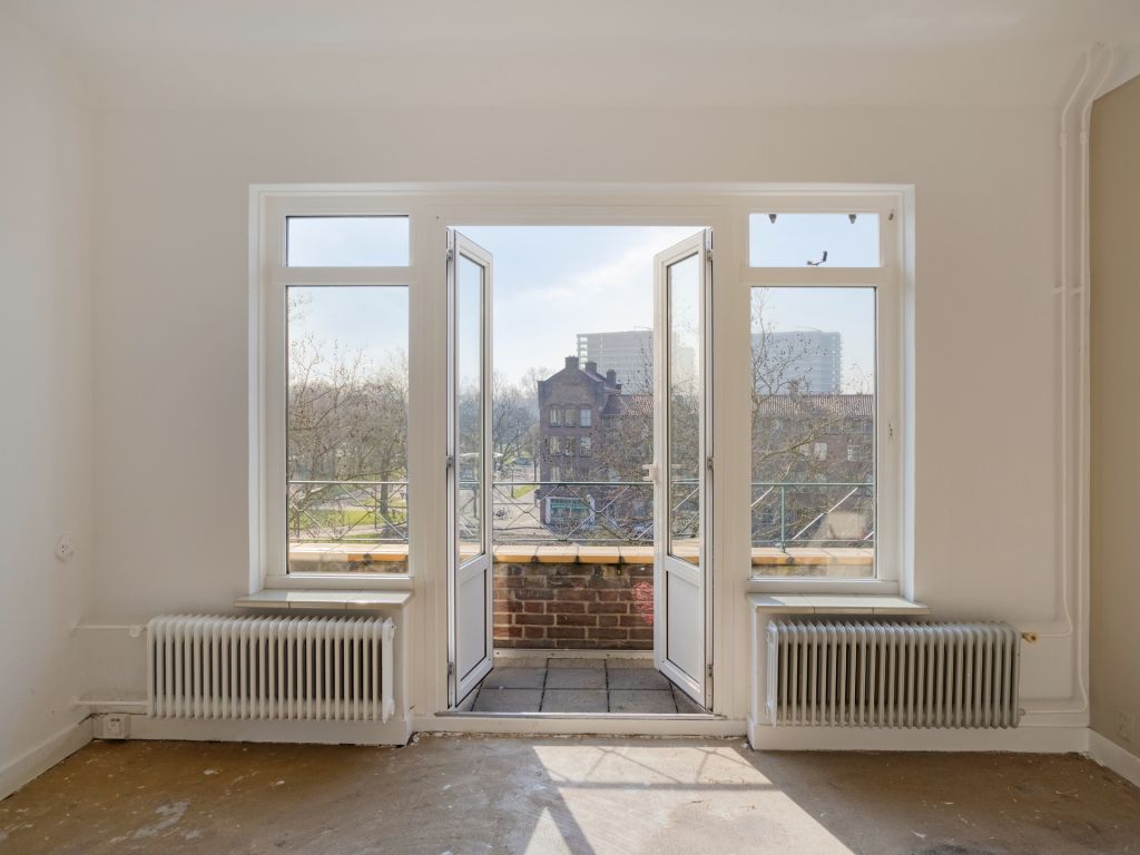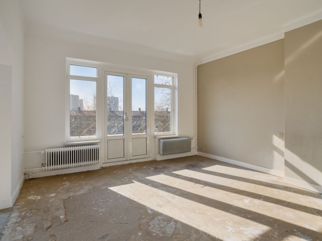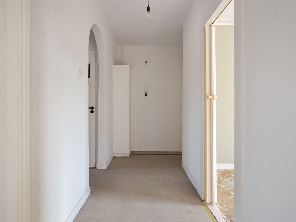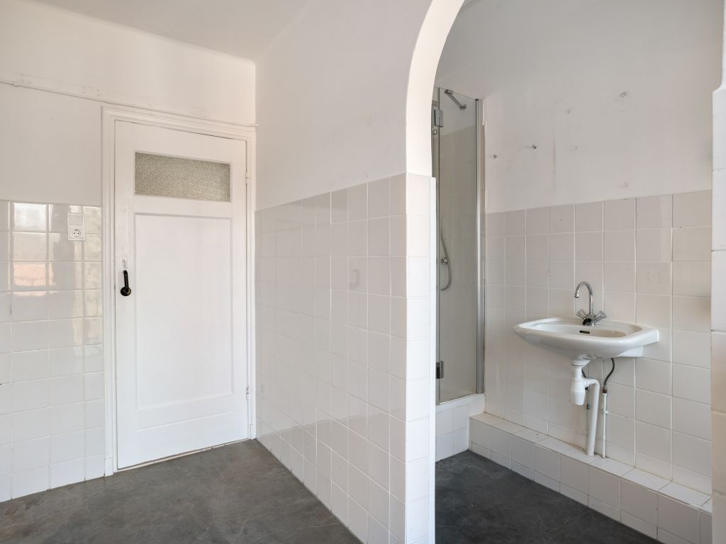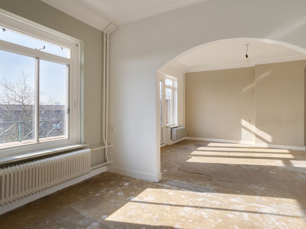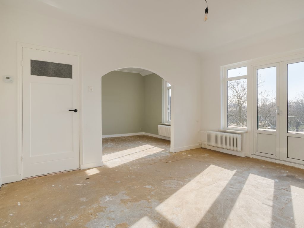 Binnenkomst in de hal met de meterkast en paneeldeuren naar de diverse vertrekken. In de ruime woonkamer geniet je dankzij de grote raampartijen van een fijne lichtinval. Door de openslaande deuren met aansluitend het balkon, kun je het gevoel van buiten naar binnen halen. Dit langgerekte balkon op het zuiden biedt een fraai overzicht over de Aartshertogenlaan. De woonkamer is opgedeeld in twee ruimtes, die je bijvoorbeeld kunt gebruiken als aparte eet- en zitkamer of wellicht gebruik je een deel als werkkamer. Ook is het mogelijk om nog een extra slaapkamer te realiseren.