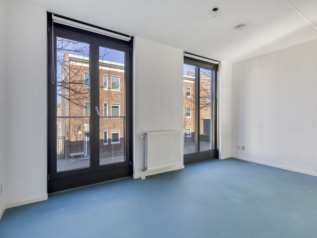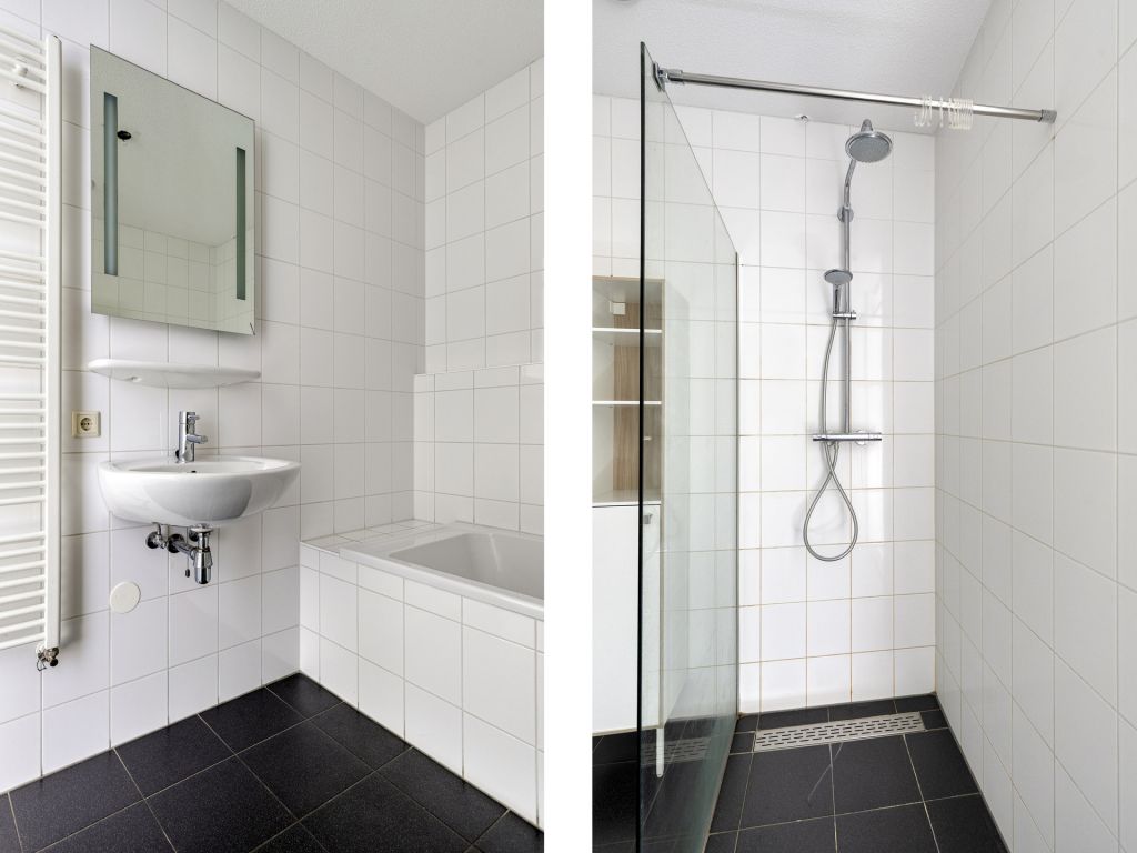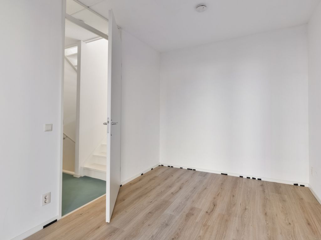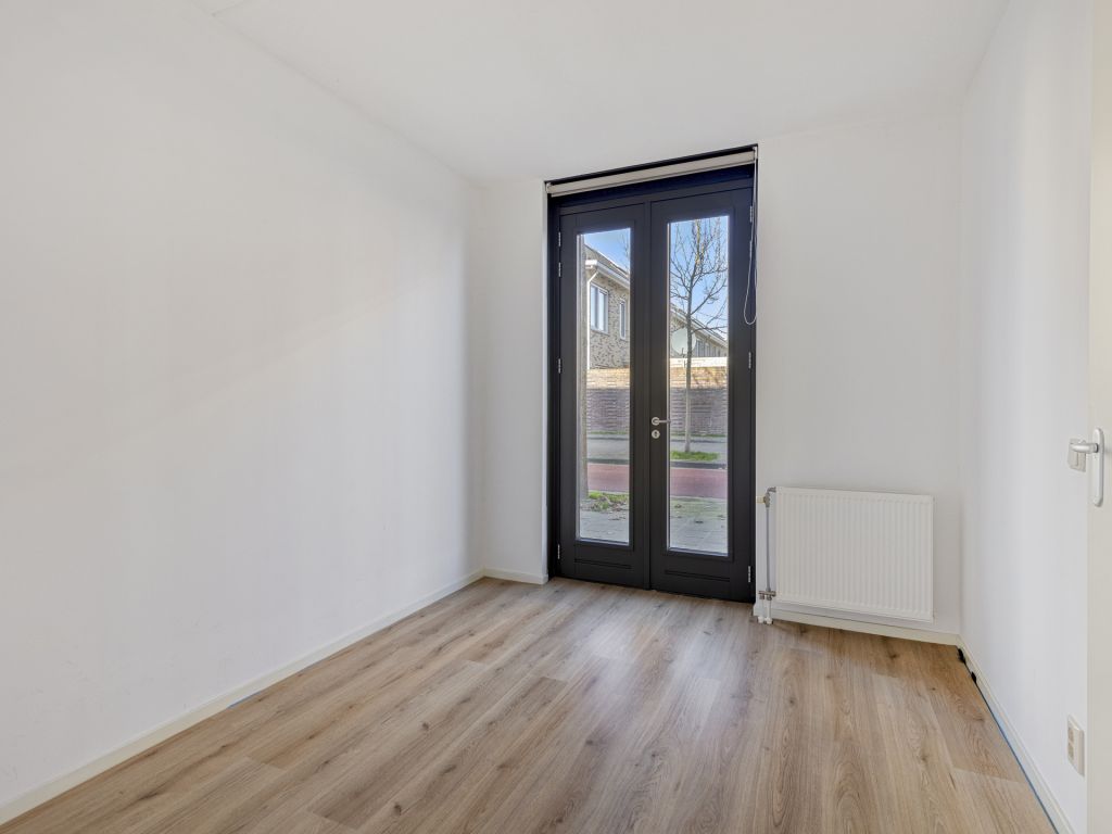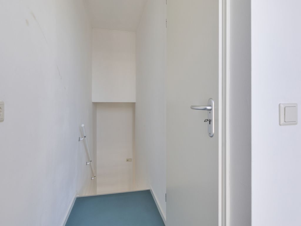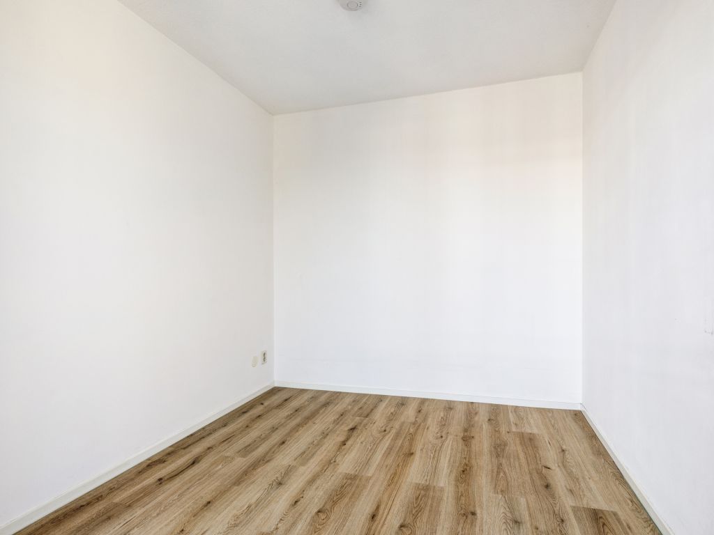 Via een kleine trap is de royale tweede slaapkamer bereikbaar, eveneens voorzien van een Frans balkon en een grote raampartij. Daarnaast bevindt zich hier een praktische bergkast met de cv-ketel en de wasmachineaansluiting.