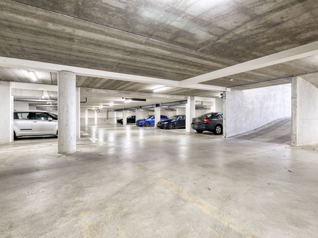 Entree/hal, meterkast, portaal met toegang tot de werk-/slaapkamer met openslaande deuren en een doorgang naar het souterrain met een eigen berging en directe toegang tot de parkeergarage met een eigen parkeerplaats.