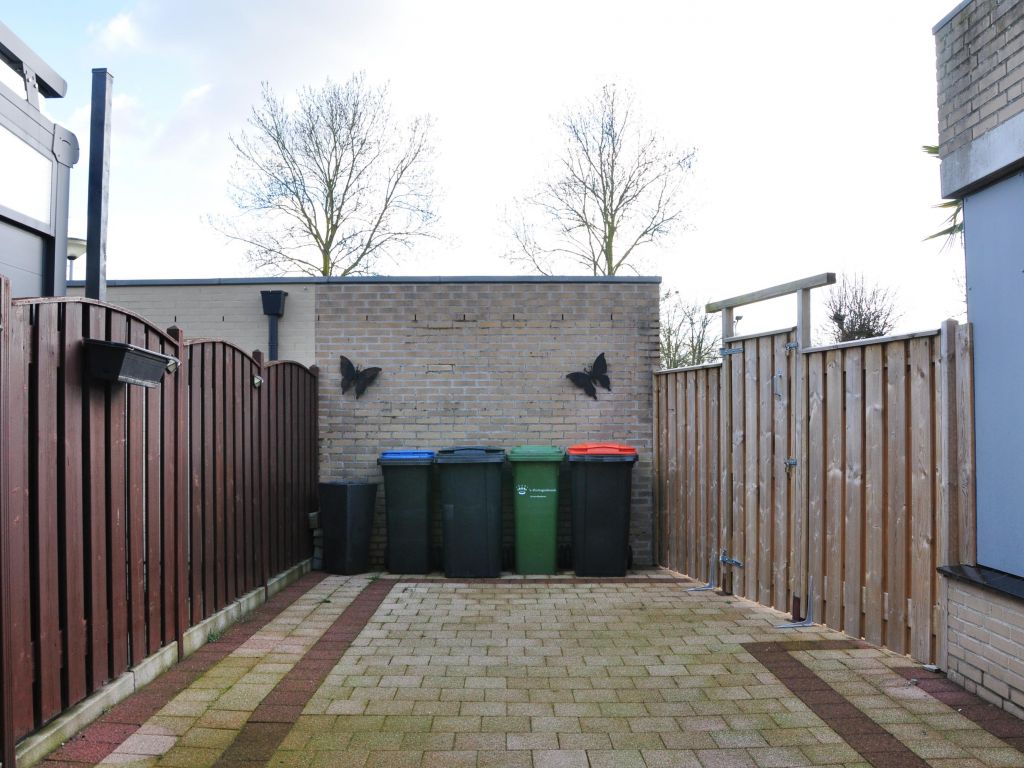 De patiotuin van deze woning is op het oosten gelegen en omsloten met houten schuttingen en een houten poort. Hierdoor kun je al vroeg in de ochtend heerlijk van de zon genieten. De tuin is aangelegd met sierbestrating en heeft een afmeting van circa 8,17 meter diep en circa 3,80 meter breed. De ruimte is groot genoeg voor het plaatsen van een leuke tuinset en biedt zelfs mogelijkheden voor het realiseren van een overkapping.