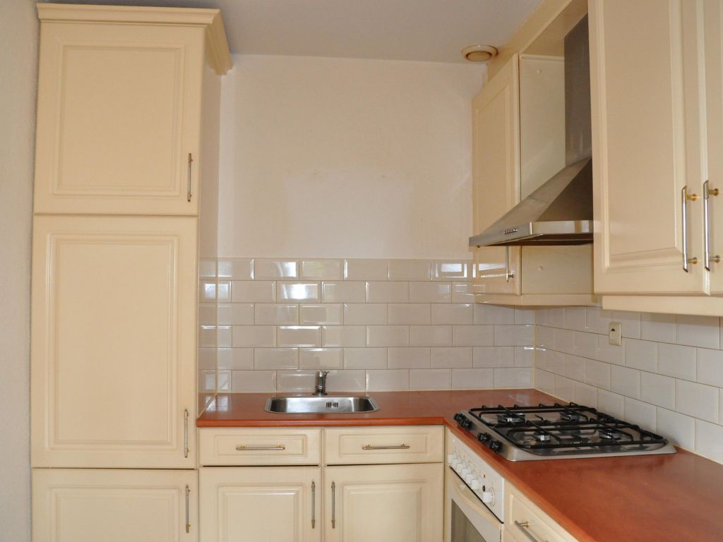 De keuken staat in open verbinding met de woonkamer, maar is enigszins uit het zicht geplaatst waardoor er toch een duidelijke scheiding tussen de ruimtes blijft. De keuken is uitgevoerd met een keukenblok in L-opstelling met onder- en bovenkasten. De volgende apparatuur is aanwezig: oven, vaatwasser, koelkast, gaskookplaat en afzuigkap.