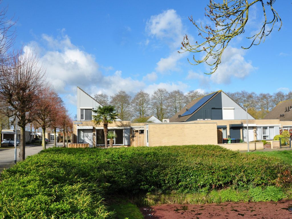 Aan de voorzijde van de woning bevindt zich een stenen berging en een leuk aangelegde ruime voortuin. Vanuit de tuin loop je eenvoudig naar de parkeerplaatsen die naast de woning liggen. Voor het huis loopt een wandelpad langs de waterpartij en groenvoorziening.